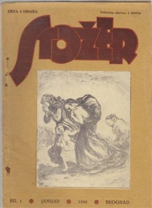 Stožer, broj 1. Godina 1932. Urednik Jovan Popović. Pišu Marko Ristić ( Odlomak o nadrealizmu i iracionalnom), Gligorić, Krklec, Vuk i ostali. Ilustracije Krsto Hegedušić, Omer Mujadžić, Zille, Kolwitz i drugi. Stanje časopisa – vrlo dobro.