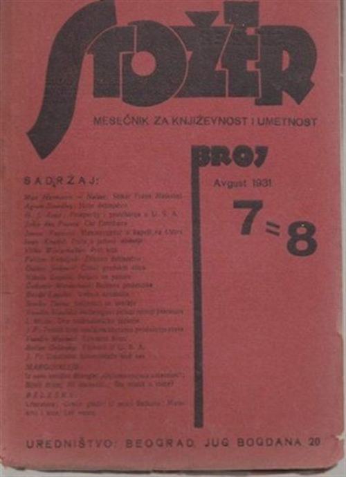 Stožer, dvobroj 7-8. Godina 1931. Urednik Jovan Popović. Pišu –