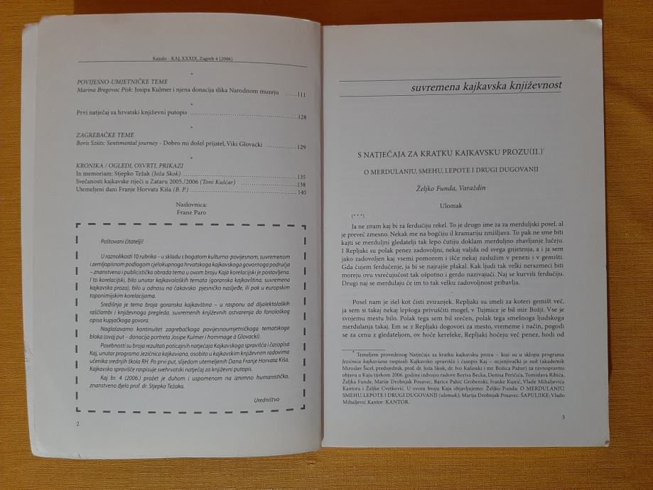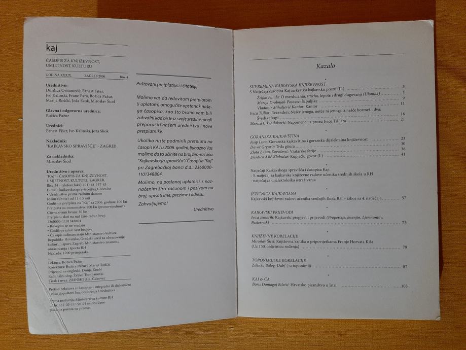 Ukratko, sasvim neistražene činjenice iz povijesti i suvremenosti kajkavskih krajeva koje Kaj obrađuje u mnogome nadilaze regionalno značenje, te predstavljaju trajne vrijednosti identiteta matične hrvatske kulture.