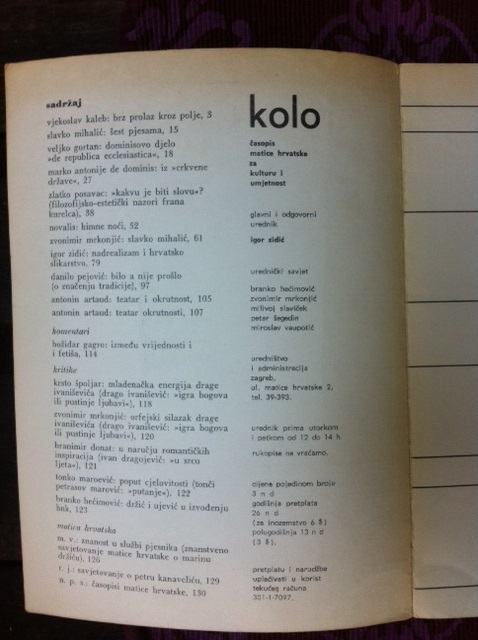 Kolo, časopis za kulturu i umjetnost br 1/2 1968
