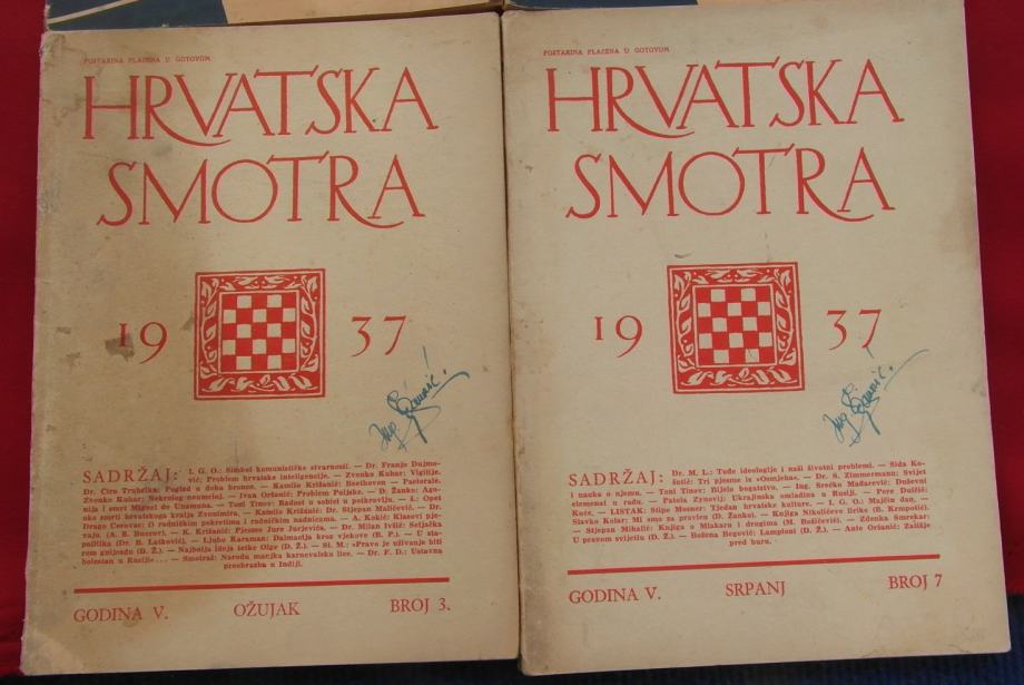 Hrvatska smotra (s podnaslovom Za književnost, umjetnost i društveni život), mjesečnik, izlazio u Zagrebu 1933–45 (od 1937. s podnaslovom Nacionalni, socijalni i književni mjesečnik). Osnivač je bio K. Šegvić, urednik V. Rieger, od 1936. i D. Žanko, a od 1937. I. Oršanić. Književnim prilozima surađivali su M. Budak, M. Cerovac, G. Cvitan, Z. Jušić-Seunik, S. Košutić, Z. Milković, V. Nikolić, J. Kaštelan, V. Kušan, V. Kos, Z. Vukelić, D. Žanko. Književni kritičari bili su A. R. Glavaš i D. Ćepulić. U političkom smislu bio je posve desno orijentiran i u vrlo oštroj oporbi prema marksističkim, lijevo orijentiranim piscima i časopisima.