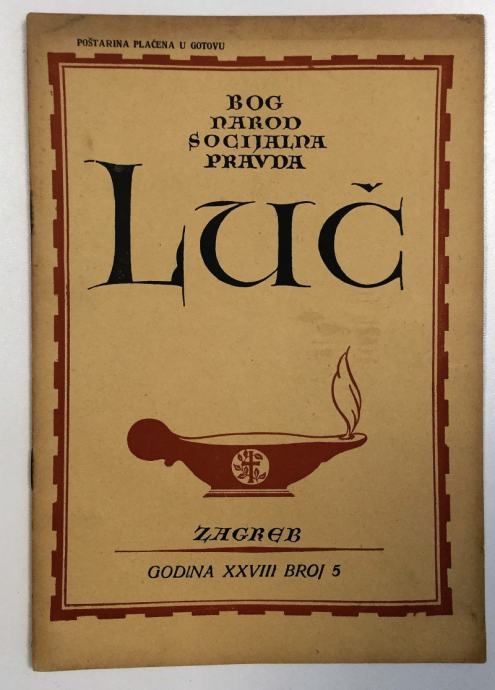 LUČ, STARI ČASOPIS, GODINA 13. BROJ 5, 1933. KULTURNO SOCIJALNI LIST