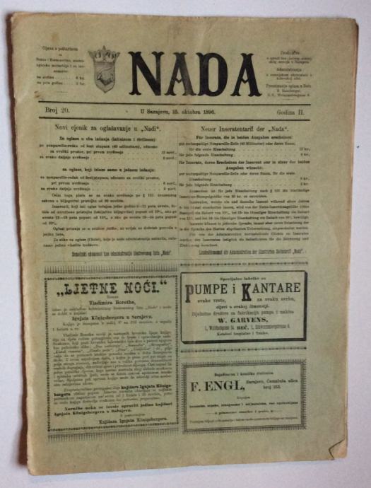 NADA, ČASOPIS, 1896 .BROJ 20, BOSNA