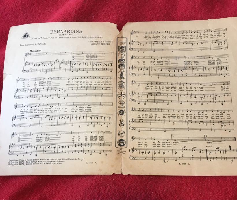 Note original Pat BOONE BERNADINE , nekad veliki hit