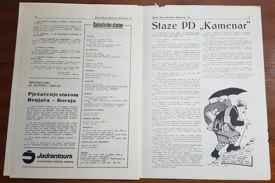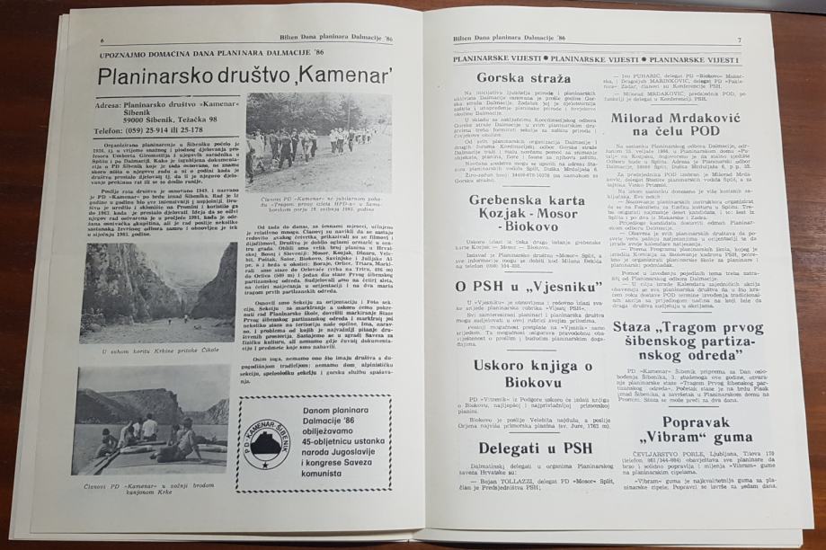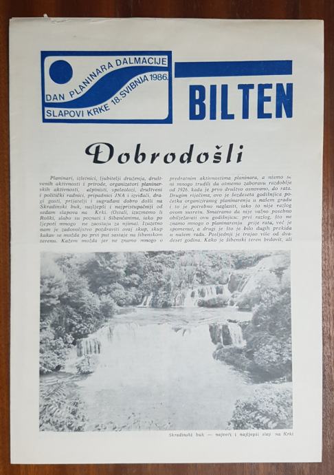 NOVINE BILTEN DAN PLANINARA DALMACIJE 1986. SLAPOVI KRKE