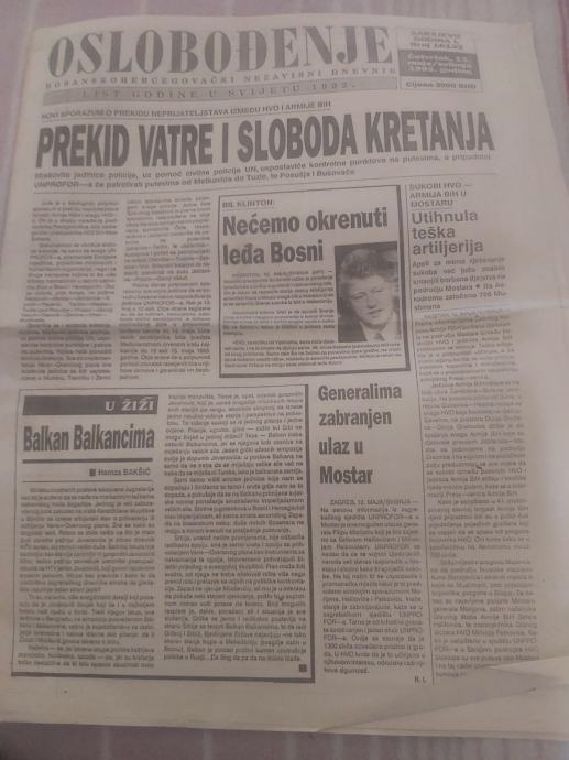 OSLOBODJENJE NOVINE RATNO IZDANJE 13.SVIBANJ 1993 GODINE RIJETKO
