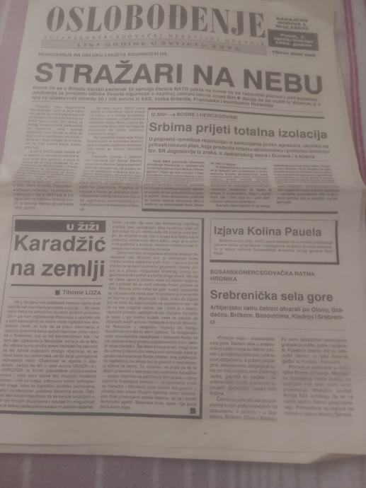 OSLOBODJENJE NOVINE RATNO IZDANJE 2.TRAVANJ 1993 GODINE RIJETKO