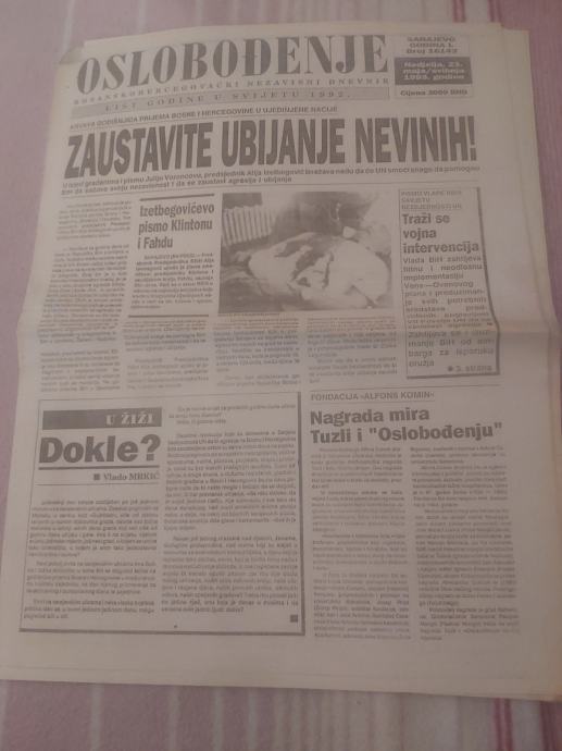 OSLOBODJENJE NOVINE RATNO IZDANJE 23.SVIBNJA 1993 GODINE RIJETKO