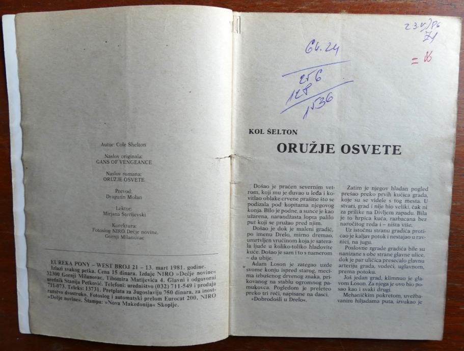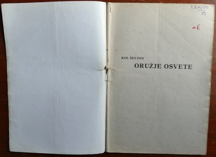 Roman iz 1981. godine. Kemijska na korici, predlistu i prvoj stranici.