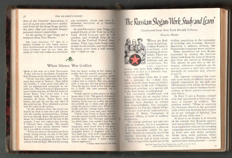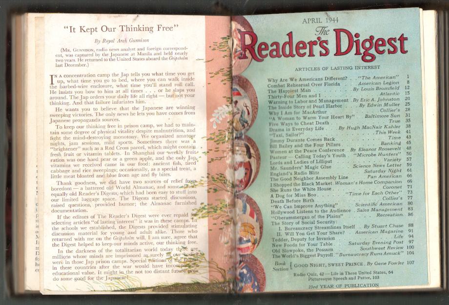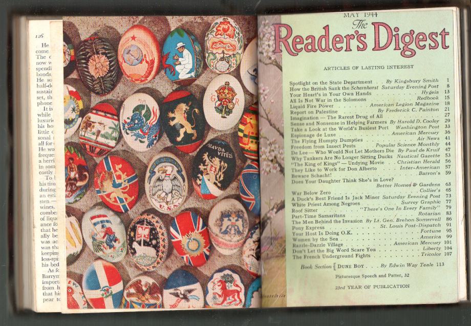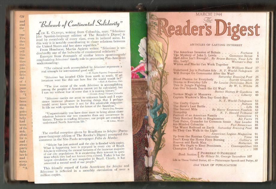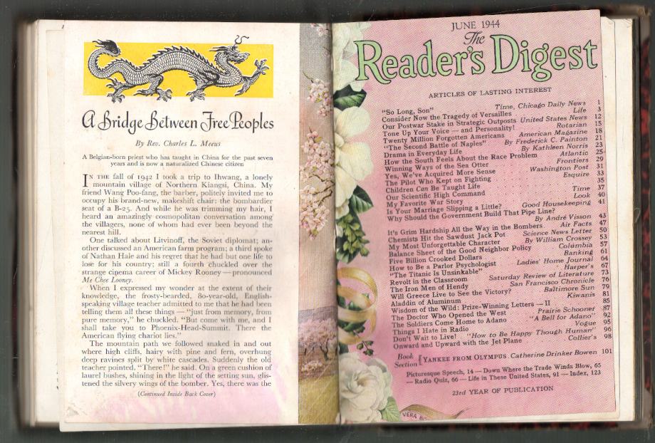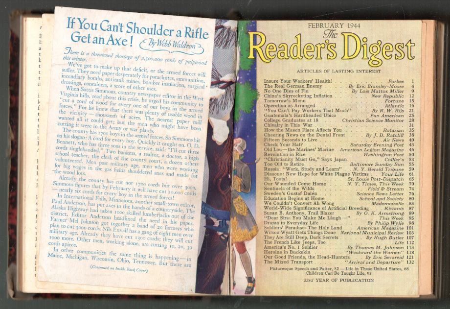Uvezanih 6 brojeva časopisa Readers Digest. Siječanj do Lipanj 1944. godine.