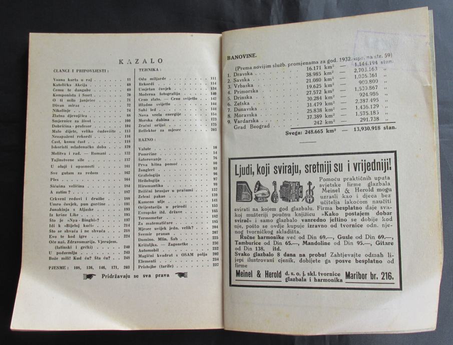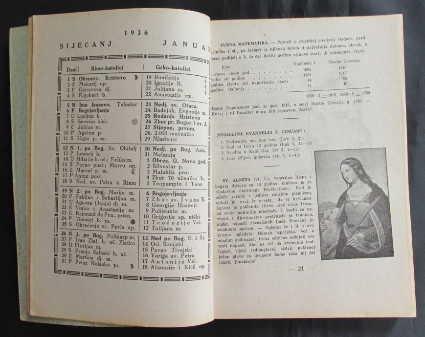 RUNOLIST / KALENDAR, Zagreb 1935.g.