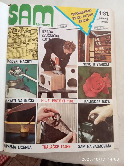 Časopis Sam svoj majstor sadrži upute i savjete za popravke ili izradu stvari u kući,stanu ili dvorištu,te detaljne ilustracije u boji.Radi se o ukoričenim dvobrojevima po godinama:1978,1979,1980,1981,1983,1986,1987,1988.1989.Ukupno 9 knjiga (uveza)..
