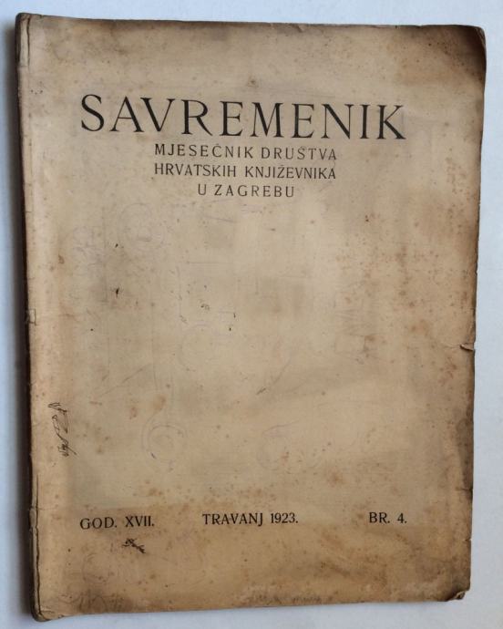 SAVREMENIK, MJESEČNIK DRUŠTVA HRVATSKIH KNJIŽEVNIKA U ZAGREBU, BROJ 4,