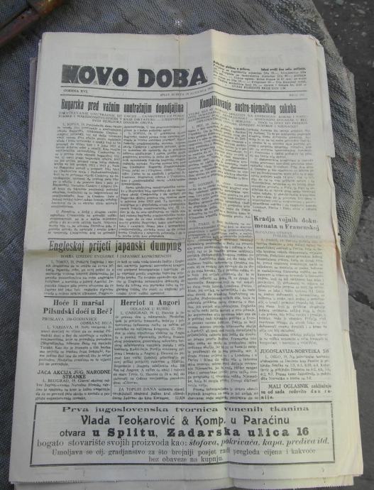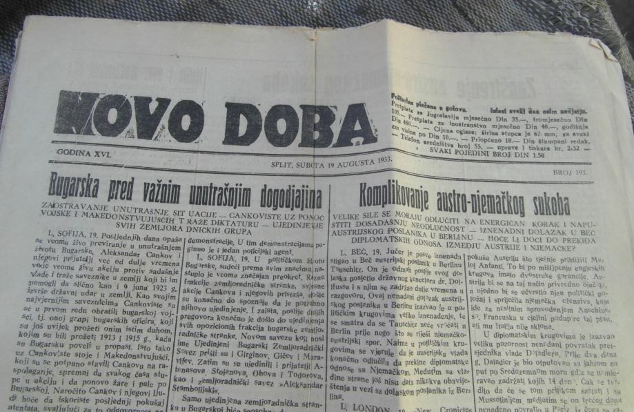 Splitske novine Novo doba od 19 augusta 1933 godine