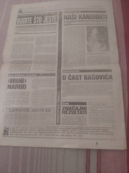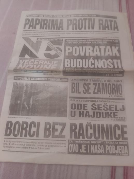 VECERNJE NOVINE RATNO IZDANJE 17.SVIBANJ 1993 GODINE RIJETKO