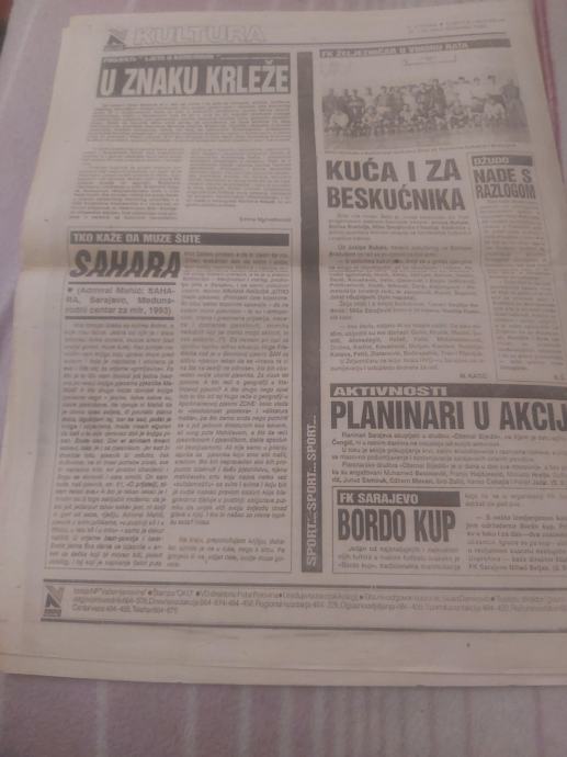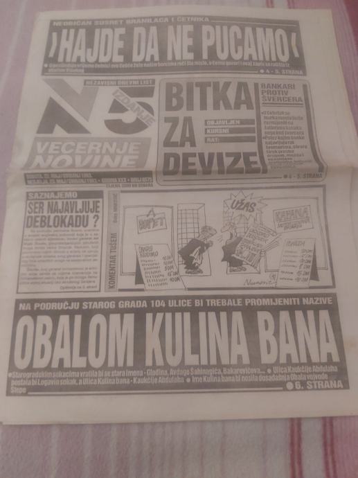 VECERNJE NOVINE RATNO IZDANJE 22.MAJ 1993 GODINE RIJETKO