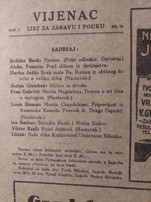 VIJENAC - list za zabavu i pouku 1923. / God. I. = Broj 10.
