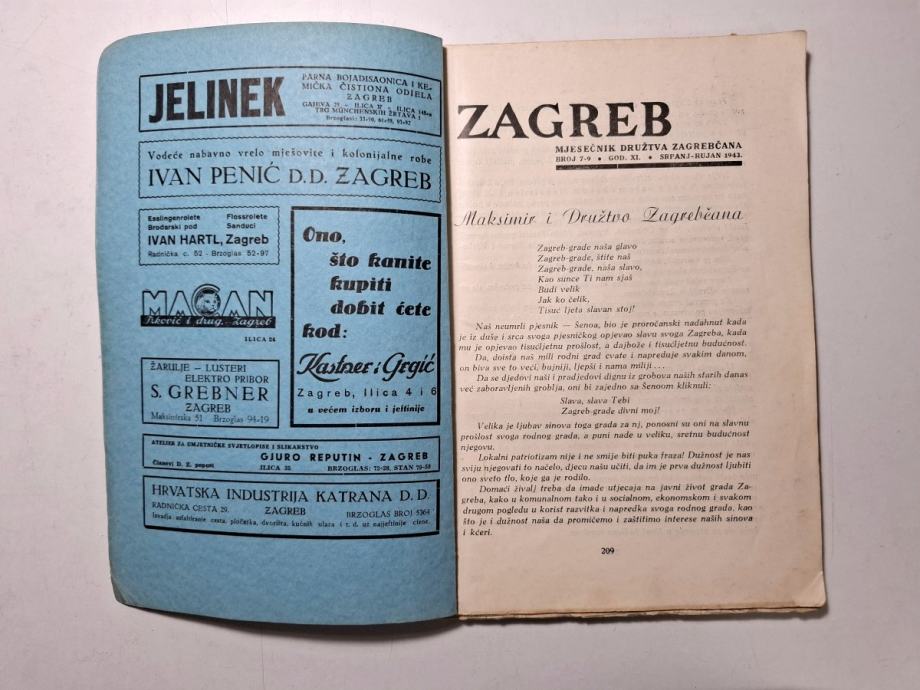 Zagreb : mjesečnik družtva Zagrebčana ( God.XI: br.7-9 / 1943. )