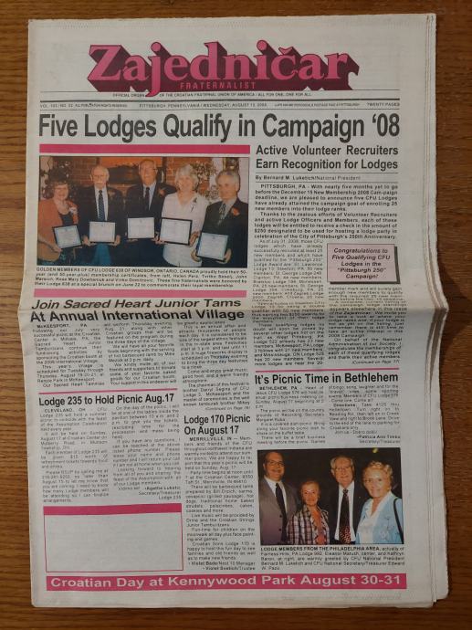 ZAJEDNIČAR - glasilo Hrvatske bratske zajednice u Americi br. 32.2008.