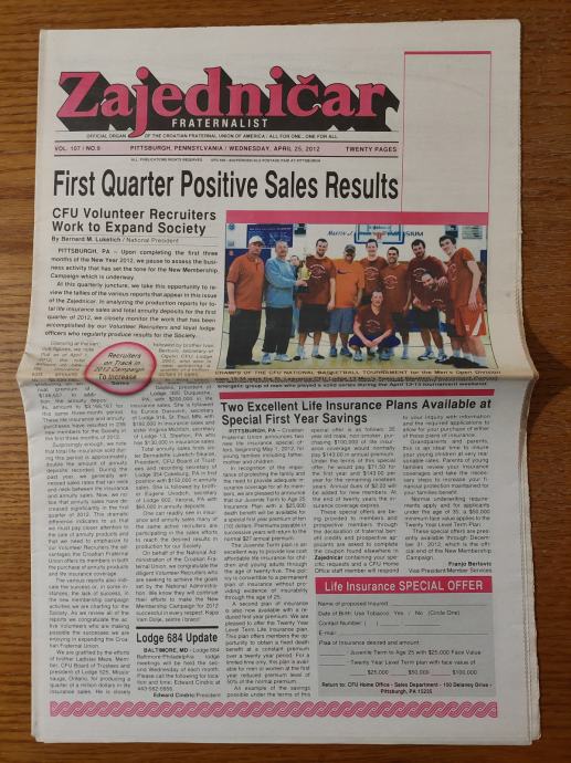 ZAJEDNIČAR - glasilo Hrvatske bratske zajednice u Americi br. 9.2012.