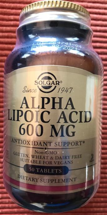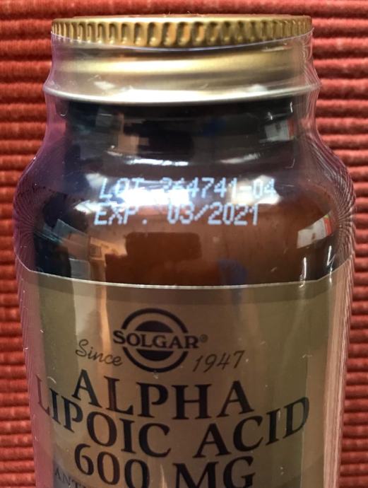 Na prodaju je alfa-lipoična kiselina u tabletama od Solgara, sadrži 50 tableta po 600mg, naručeno iz Amerike, vrijedi do 03/2021.