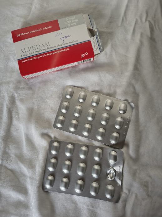 Alpedam tablete 5mg, u kutiji ima 29 tableta. Ovaj je lijek indiciran kao zamjenska terapija za liječenje esencijalne hipertenzije u bolesnika čija je bolest već dobro kontrolirana s istodobnom primjenom fiksne kombinacije perindoprila/indapamida te amlodipina u istim dozama.