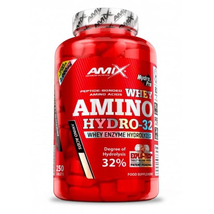 AMINO HYDRO 32 predstavljaju kompletnu aminokiselinsku formulu u obliku tableta. Ove aminokiseline potječu isključivo iz izolata proteina sirutke. Stupanj hidrolize je 32% što znači da ovaj proizvod ima najbolju biološku vrijednost i apsorpciju u organizmu te kao takav brzo i intenzivno hrani mišiće nakon teških napornih treninga te u njima pokreće anaboličke procese potrebne za oporavak i izgradnju čiste mišićne mase.