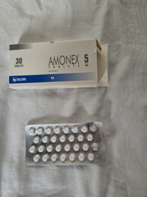 Amonex tablete 5mg, u kutiji ima 28 tableta. To je lijek koji se upotrebljava u liječenju visokog krvnog tlaka (hipertenzija) i određenih vrsta bolova u prsnom košu (angina pektoris, uključujući i rijetku vrstu nazvanu Prinzmetalova angina).