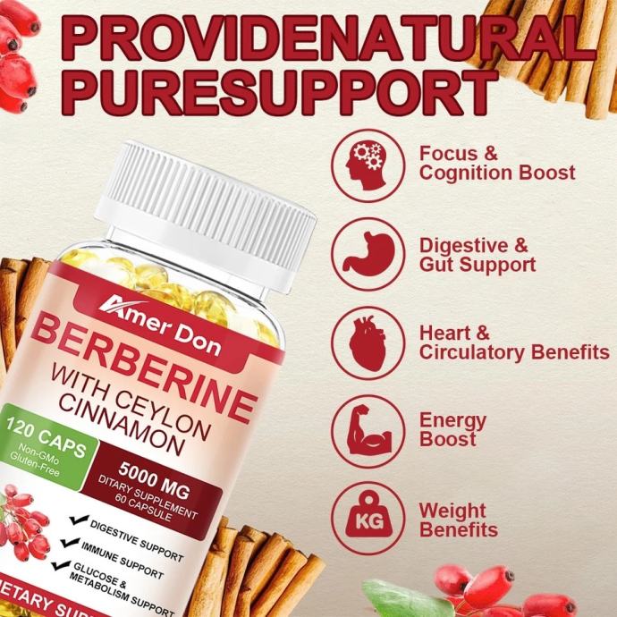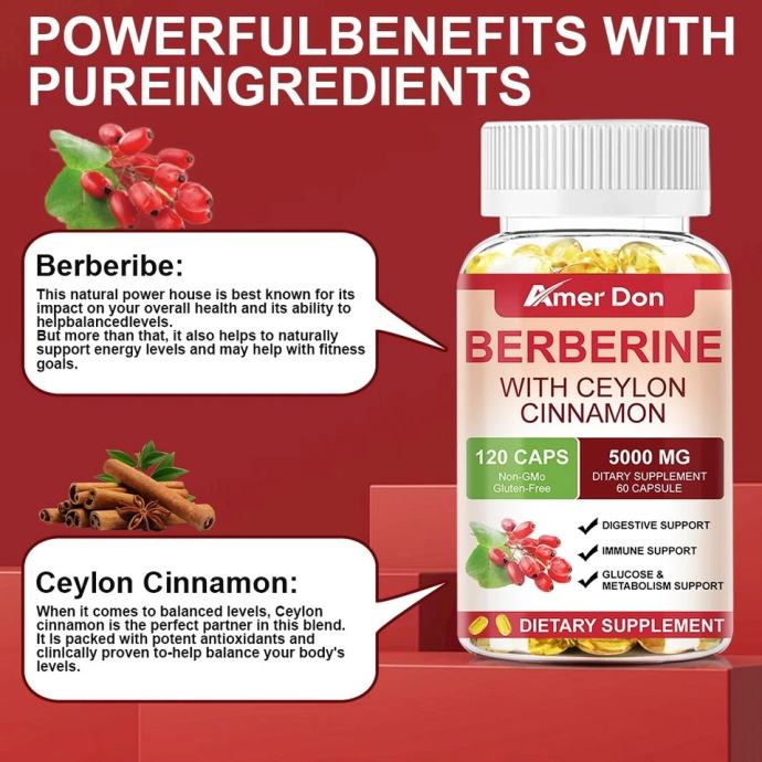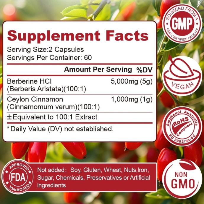 Berberin s cejlonskim cimetom 5000 mg kapsule Zdravlje srca i imunitet Šećer u krvi