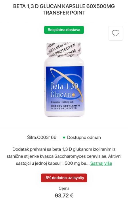 Transfer point ponosno ističe da u jednoj kapsuli sadrži minimalno 83% čistih beta 1,3 D glukana. Samim time ovaj beta 1,3 d glucan postiže najbolji imunološki odgovor u odnosu na konkurenciju.