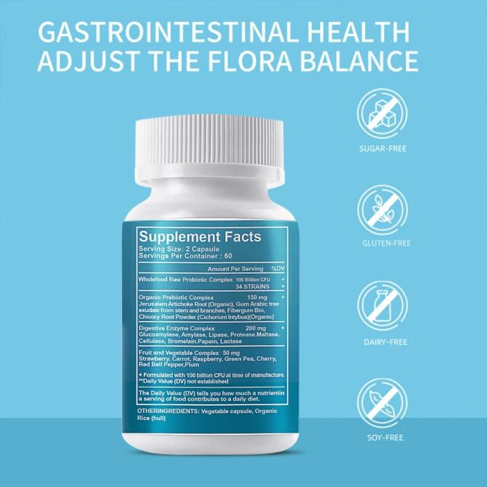 NOVO! Dodatak prehrani s prebiotičkim probiotičkim i postbiotičkim probavnim enzimima 120 kapsula~