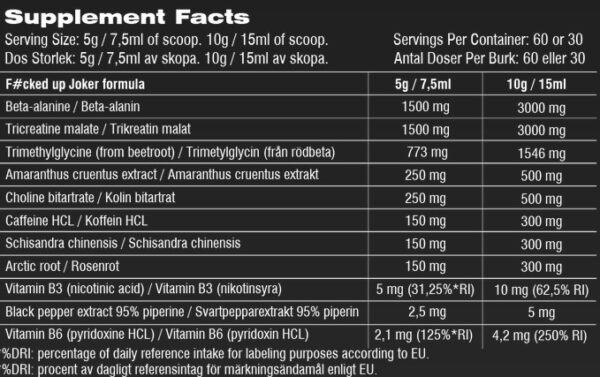 F#CKED UP JOKER EDITION nije standardan preworkout, već se sastoji od jedinstvene kombinacije sastojaka koji isporučuju jedinstveni učinak i doživljaj.