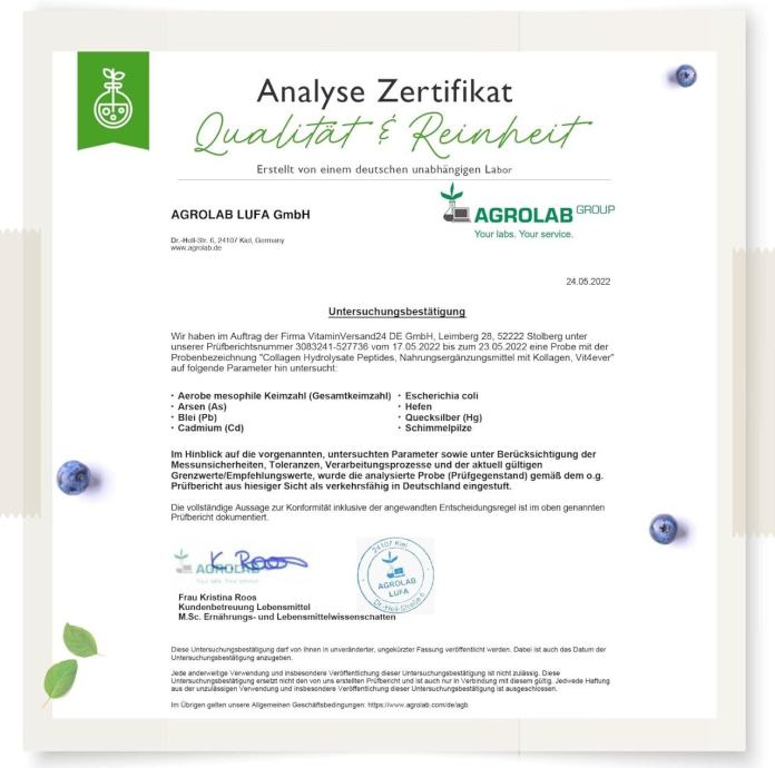 Sadrži 18 aminokiselina, s posebnim naglaskom na glicin, prolin i hidroksiprolin, koji čine oko 50% ukupnog sadržaja aminokiselina, ključnih za održavanje zdravlja kože i kostiju.