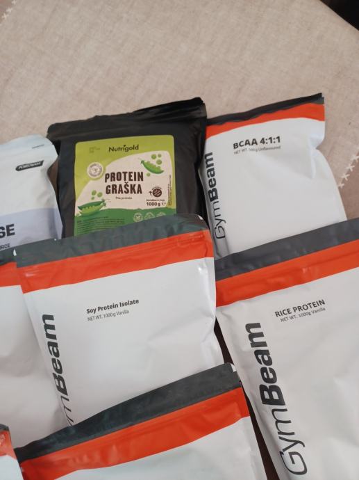 Proteini: riža(1 kg), grašak( 1kg), soja ( 2 pakovanja po 1kg).