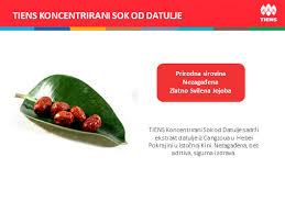 TIENS tekućina od datulje je izvadak iz visokokvalitetne žižule, ploda raznolikosti Zlatne svile. Kinesku datulju, kao je još nazivaju, odlikuju visokim prehrambenim vrijednostima te je bogat izvor vitamina i minerala. Zbog visokog sadržaja vitamina C, djelotvornog antioksidansa, one se zovu “prirodni vitamin C”. Datulje sadržavaju primjerice između 70 i 80 puta više vitamina C u odnosu na jabuke. Također je bogata vitaminima B kompleksa, koji potiću metabolizam i poboljšavaju stanje kože i noktiju. Kineske datulje su izvrstan izvor željeza, kalija, magnezija i kalcija. Datulja sadrži 18 od 24 aminokiselina bitnih za pravilno funkcioniranje organizma. Međutim, najkorisnija komponenta ekstrakta kineske datulje je adenozin monofosfat, u kratkom cAMP. Ovaj spoj je odgovoran za pojaćanje međustaničnih signal jer utječe na unutarstanične impulse. U ljudskom tijelu, cAMP između ostalog ubrzava komunikaciju u živčanom sustavu. To znači da može smiriti živce i poboljšati kvalitetu sna.