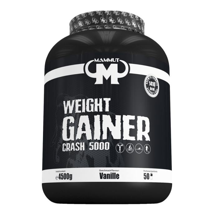 Weight gainer crash 5000 je gainer visoke vrijednosti ugljenih hidrata, koncentrata proteina u omjeru 80:10 ugljenih hidrata, kao što je dekstroza i maltodekstrin i 4 vrste kompleksnih proteina iz soje, piletine, surutke i proteina mlijeka koji se savršeno uklapaju kao i dodatkom kreatina.