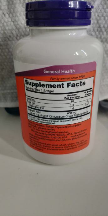 NOW Caprylic Acid, kaprilna kiselina 600mg po kapsuli (100 kapsula)