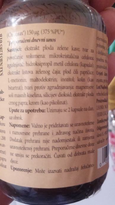 Sadrži ekstrakt zelene kave, zelenog čaja, crnog papra, plod čili papričice, krom, l-metionin, kolin i inozitol.