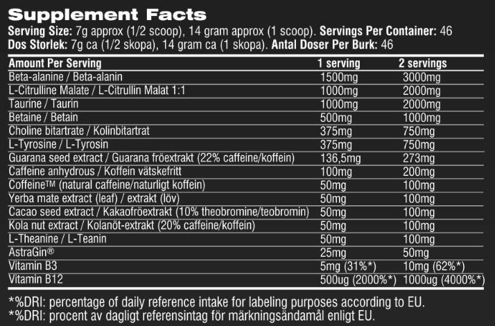 CRAZY 8 pojačan je još s fokus matricom (koja se sastoji od kolina, L-tirozina i taurina) i power matricom (L-citrulin i beta alanin).