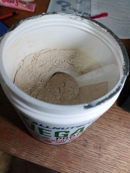 Veganski protein od jagode marke Allnutrition. Kupljen u trgovini fitness.com.hr, otvoren te je iskorištena samo jedna mjerica (potrošeno cca 23g od 500g). Prodaje se jer vlasniku ne odgovara okusom. Kupljeno za 14 eura, a prodaje se za 7 eura.
