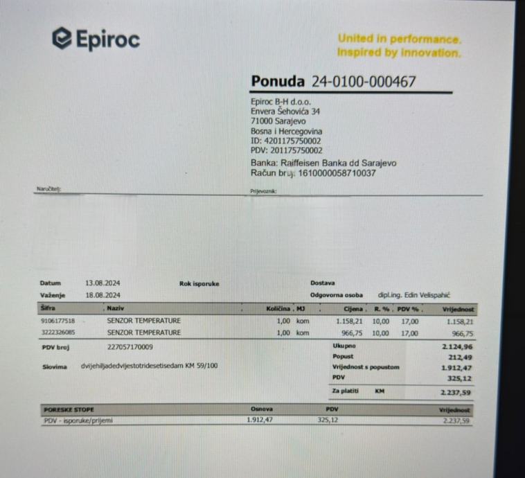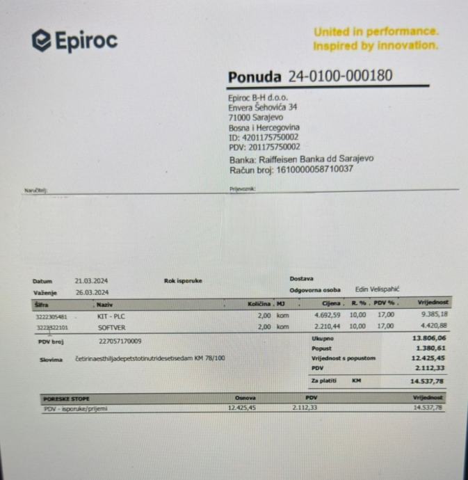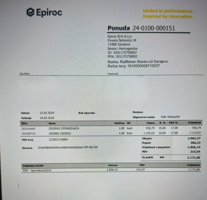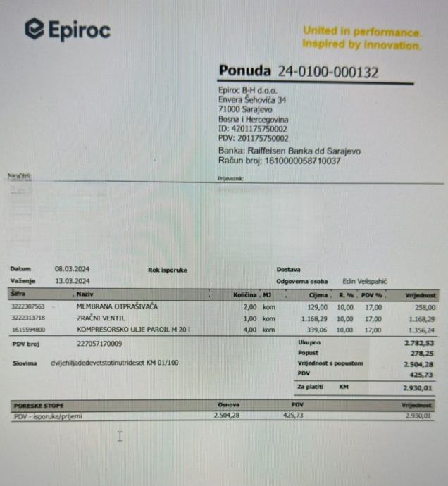 21.03.2024 godine rađen veliki servis od strane Atlas u prilogu i računi šta je sve rađeno copco servisa