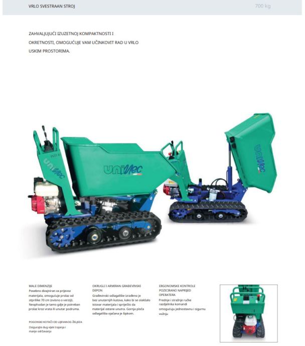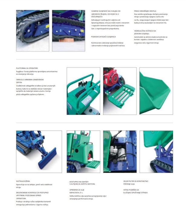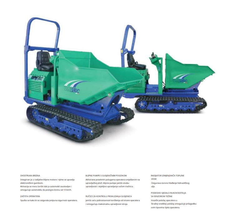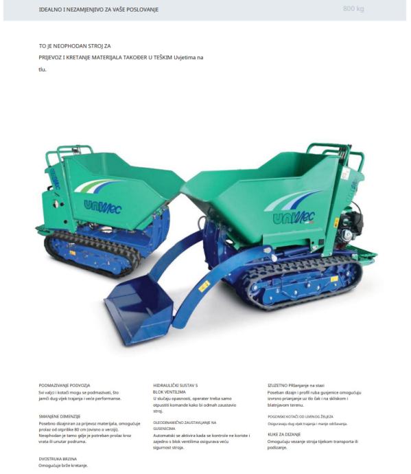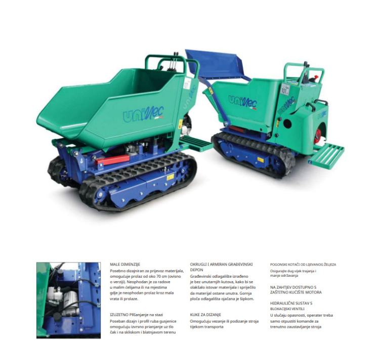 Minitransporter idealno je rješenje za građevinske i poljoprivredne radove gdje je potrebno prevoziti materijale po neravnim površinama, blatnjavom ili pjeskovitom terenu, padinama ili stepenicama i teško dostupnim mjestima.