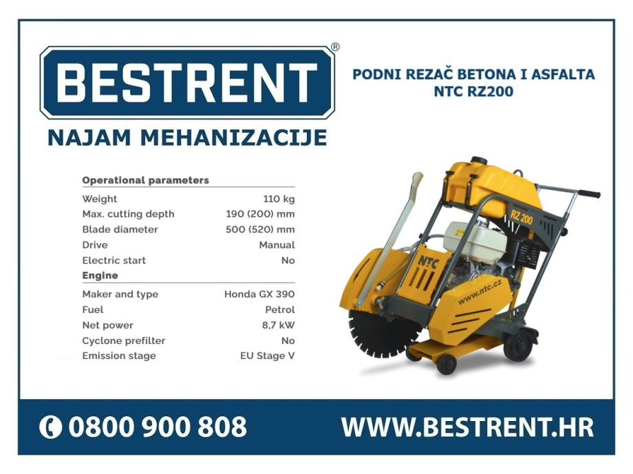PRODAJA - Podni rezač betona i asfalta NTC RZ200 (može i najam)