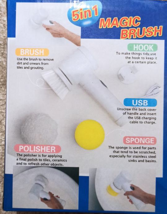 Univerzalna četka za čišćenje ,poliranje ,četkanje sa nastavcima.Može poslužiti za poliranje farova na autu.Novo,nekorišteno.