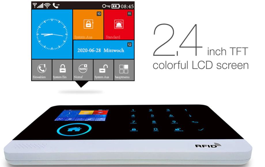 Centralna jedinica je srce alarmnog sustava. Na nju se bežično spajaju svi senzori i dodaci. Aktivacija, deaktivacija i upravljanje se obavlja pomoću daljinskog upravljača, aplikacije, tipkovnice, sms-om, glasom ili RFID kartice. 2,4″ ekran u boji na kojem se prikazuju sve potrebne stavke i stanje sustava te služi za upravljanje cjelokupnim sustavom.