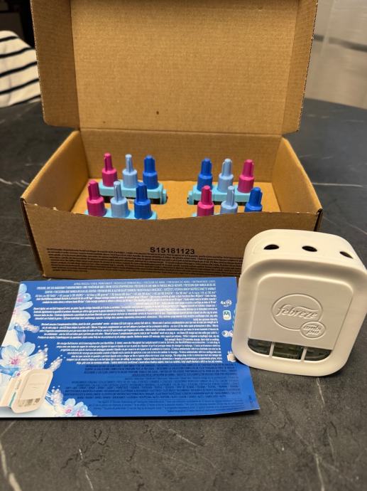 Prodajem nov Ambipur (Febreze) električni aparat za osvježavanje zraka zajedno s 5 refillova (4 zasebno, 1 u aparatu). Miris Spring Awakening.
