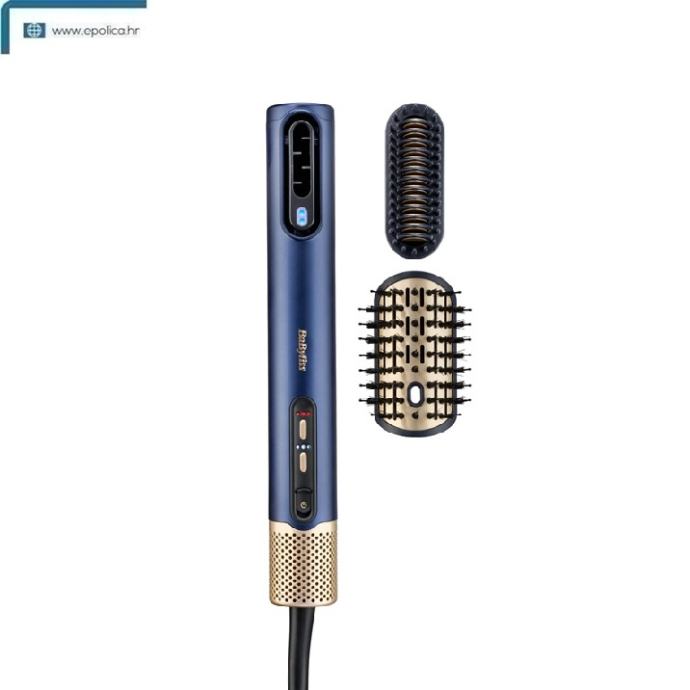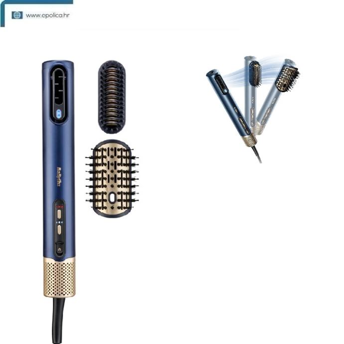 BaByliss stilizator za kosu Air Wand AS6550E Brzo i učinkovito sušenje, ravnanje i stiliziranje. Sve u jednom. Bez oštećenja toplinom. BaByliss Air Wand suši, ravna i stilizira uz dodavanje volumena. Brzo snažno sušenje Super-brzo sušenje od 123 km/h i napredna tehnologija protoka zraka osiguravaju još bolju snagu sušenja. Visokoučinkovito ravnanje Ravna kosu sa serijom precizno izrađenih keramičkih ploča, savršeno postavljenih za ravnanje od korijena do vrha kose. Prekrasan volumen Zakrivljena ovalna četka sa savršenom kombinacijom četkica za raščešljavanje, feniranje i dodavanje volumena. Precizan sustav protoka zraka Posebno dizajnirani zračni kanali osiguravaju optimiziranu toplinu, brzinu zraka i pritisak za učinkovito zaglađivanje i oblikovanje. Ultra-care način rada Napredni ultra-care način rada izmjenjuje topli i hladni zrak, pažljivo regulirajući toplinu na kosi. Digitalni motor velike brzine Lagani, dugovječni digitalni motor velike brzine, posebno dizajniran za visokoučinkovito sušenje. Kontrola protoka zraka i temperature 3 postavke protoka zraka i 4 postavke temperature omogućuju različite kombinacije stiliziranja od mokrog do suhog - za sve tipove kose. Izuzetno lagan Samo 380 g - naše najlakše sušilo do sada. Posebno dizajnirano za maksimalnu jednostavnost korištenja. Tehnologija protiv kovrčanja Napredni dvostruki ionski sustav koji kombinira pozitivne i negativne ione kako bi eliminirao kovrčanje i neposlušne vlasi. Bez oštećenja toplinom Snažno sušenje s pažljivo kontroliranom toplinom za brze rezultate - bez oštećenja kose. Magnetni stražnji filter Jednostavno čišćenje uz uklonjivi magnetni stražnji filter.