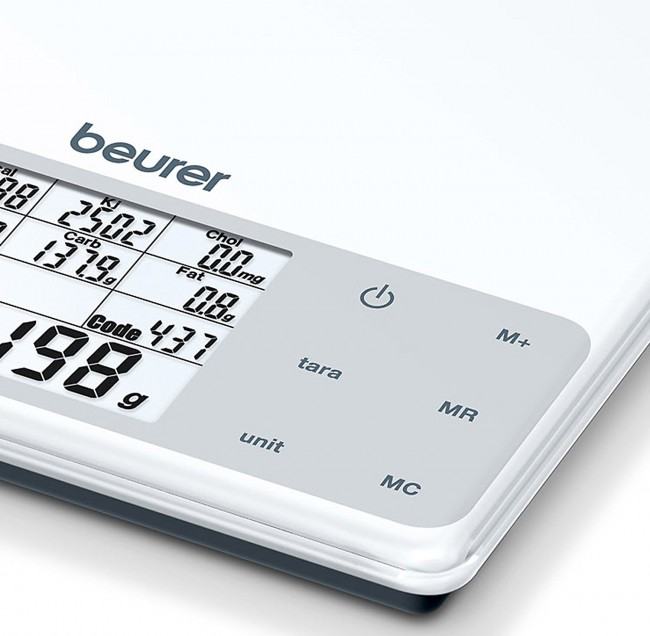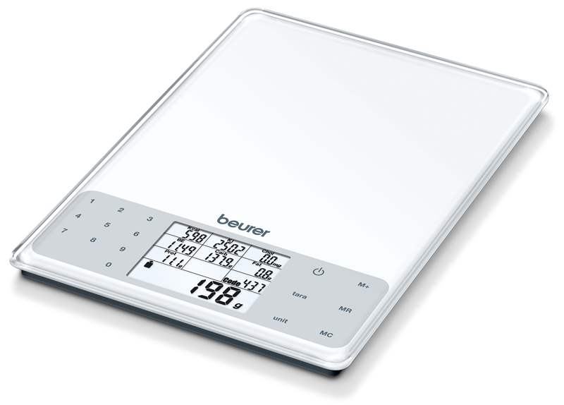 Izračunavanje nutritivnih i energetskih vrijednosti (kcal, kJ, masnoća, jedinice za kruh, proteine, ugljikohidrate i kolesterol) za 950 namirnica. Jednostavan LCD zaslon. Kapaciteta 5 kg, sa odstupanjem od 1 gram. Automatsko isključivanje, pokazatelj preopterećenosti. Veličina: 16,5cm x 23cm x 2,4cm