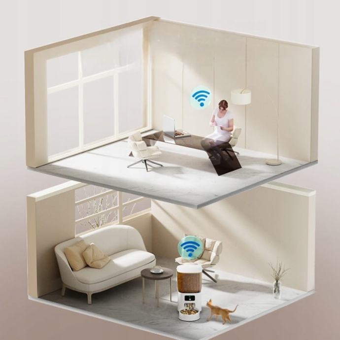 Ovaj pametni raspršivač donosi potpunu autonomiju. Kroz mobilnu aplikaciju povežite se na dozator i lako postavite raspored hranjenja, odredite broj obroka dnevno i veličinu svakog dijela. To je idealno za kontrolu tjelesne težine i uspostavljanje redovne rutine hranjenja. Veliki 5-litreni spremnik pruža dovoljno hrane za nekoliko dana, omogućujući vam da se brinete zbog duljih izostanaka.