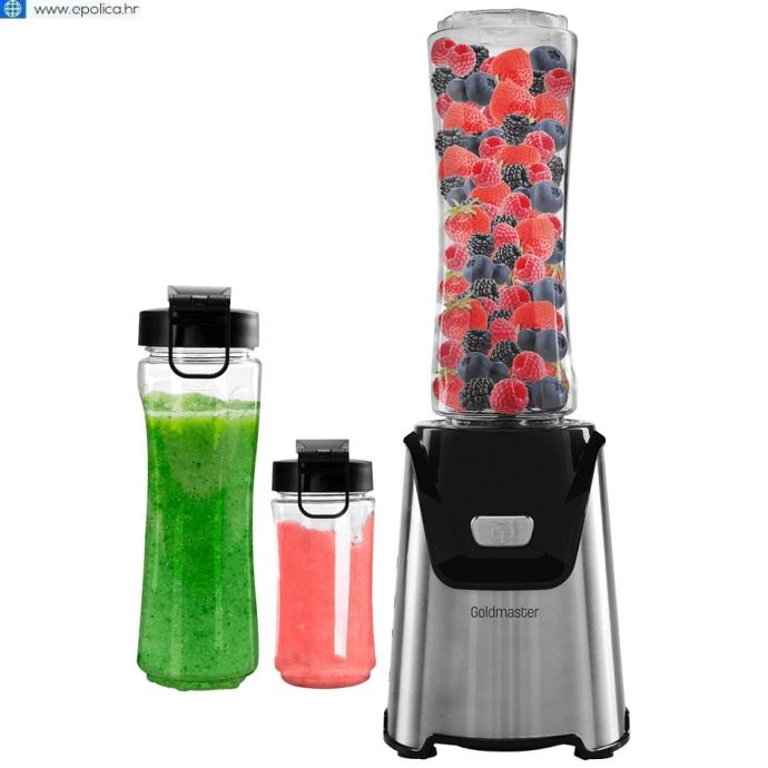 Blender, za Smothie, 400 W Blender, za Smothie, snaga motora 400 W, učinkovita četverostruka oštrica, noževi od nehrđajućeg čelika, dvije putne boce 400 ml. i 600 ml., boce perive u perilicama posuđa, jednostavno čišćenje i održavanje, putni poklopac sa zaštitom protiv kapanja.